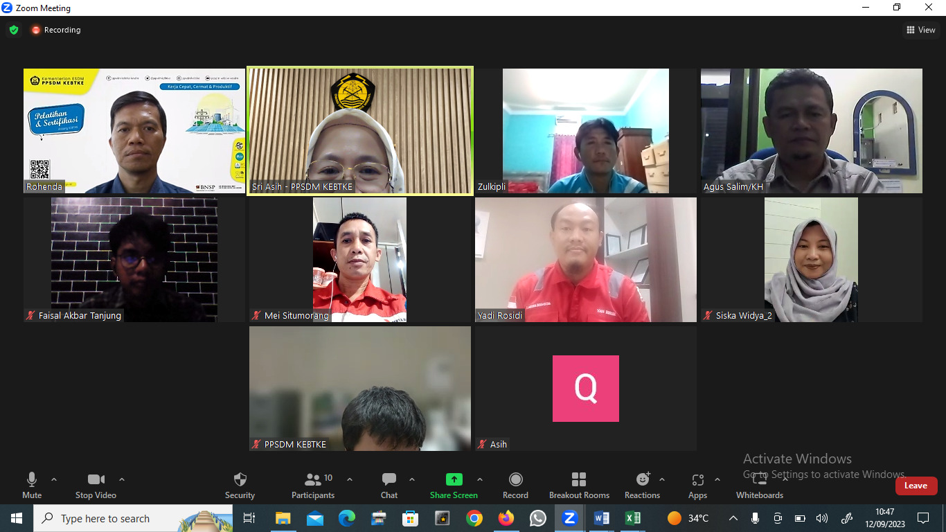 Pusat Pengembangan Sumber Daya Manusia, Ketenagalistrikan, Energi Baru, Terbarukan dan Konservasi Energi (PPSDM KEBTKE) menyelenggarakan Pelatihan Teknis dan Sertifikasi Pengawas Operasional Pertama (POP) Panas Bumi (Sistem Distance Learning) pada tanggal 11 s.d 13 September 2023. kegiatan Uji Kompetensi dilaksanakan pada tanggal 14 s.d 15 September 2023 melalui aplikasi zoom.