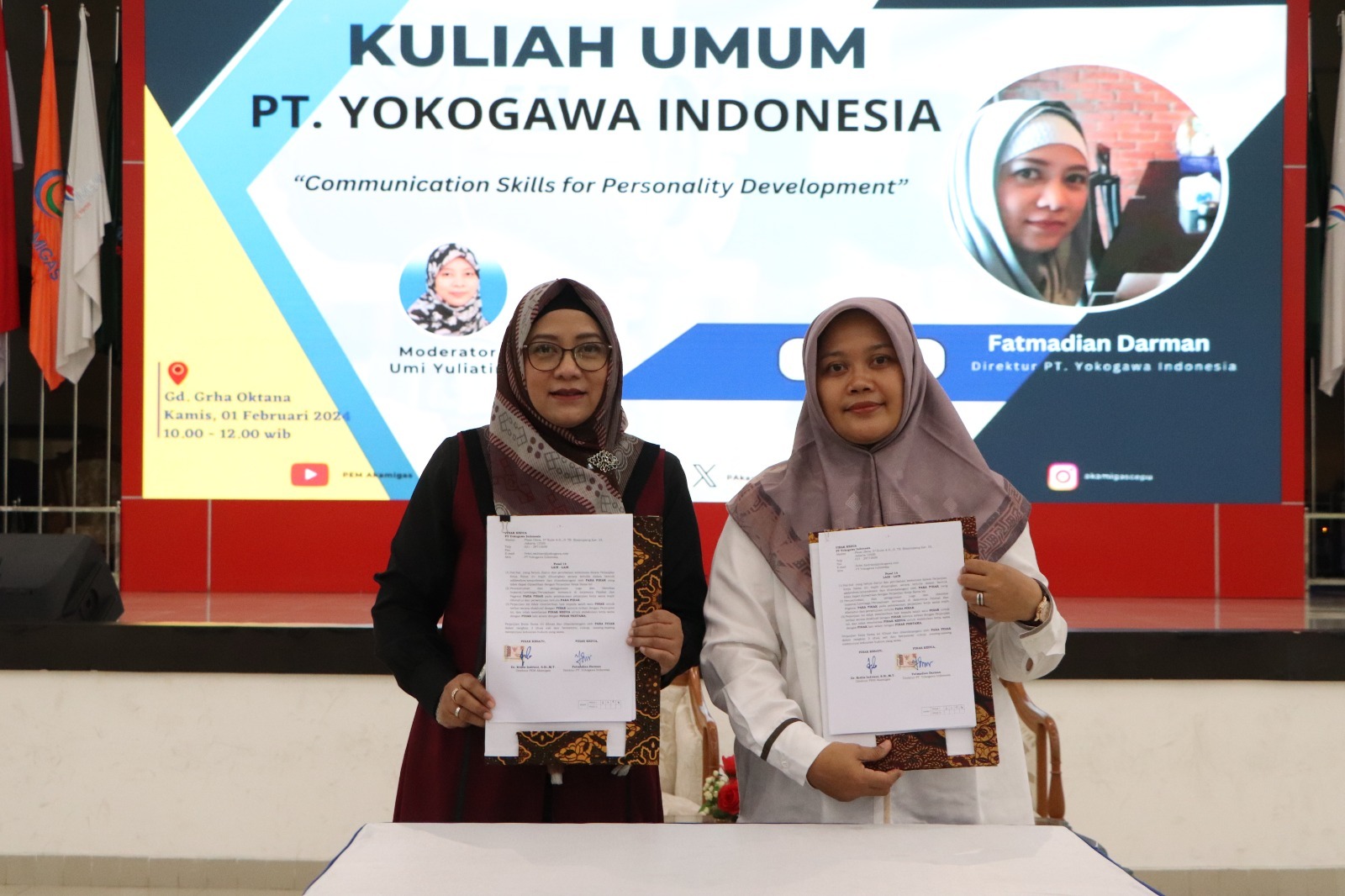 Perempuan cantik Direktur PT. Yokogawa Indonesia Fatmadian Darman, hadir di Politeknik Energi dan Mineral Akamigas dalam rangka penendatanganan perjanjian kerja sama sekaligus menjadi narasumber dalam One Day With Experts (1DWE) PEM Akamigas pada 1 Februari 2024 di Grha Oktana PEM Akamigas.