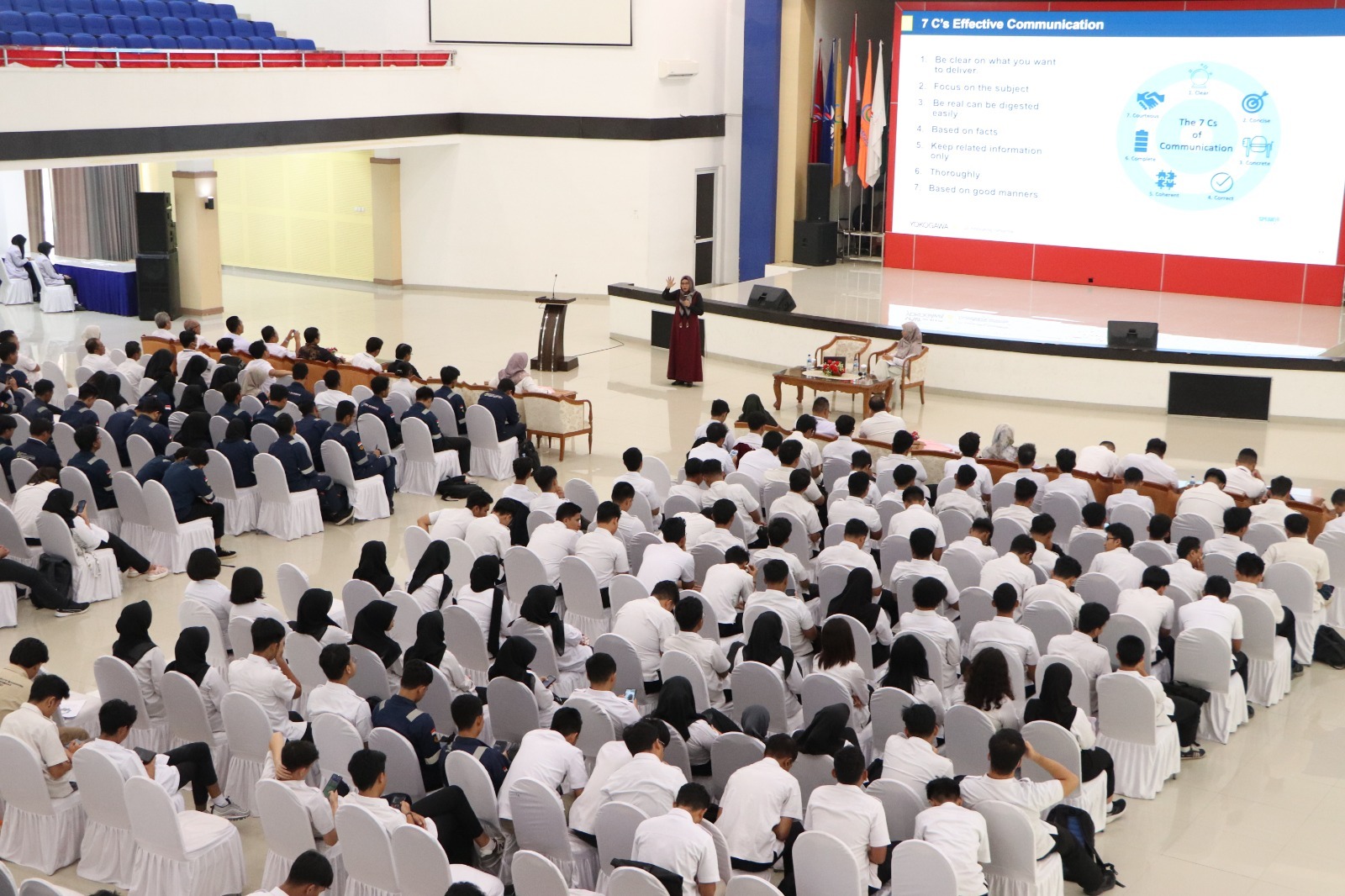 Kegiatan kuliah umum di PEM Akamigas kali ini mengangkat tema “Communication Skills for Personality Development”, yang menurut Direktur PEM Akamigas merupakan ilmu yang sangat berguna bagi mahasiswa dalam menghadapi dunia kerja dan masyarakat nanti. “1DWE ini adalah kegiatan rutin yang merupakan salah satu tambahan wawasan yang tidak hanya di kelas. Aspek keilmuannya pun lebih beragam bukan hanya teknologi migas melain juga soft skills yang akan sangat berguna bagi mahasiswa dalam menghadapi dunia kerja maupun saat terjun ke masyarakat nanti,” kata Erdila saat membuka secara resmi kegiatan 1DWE ini.
