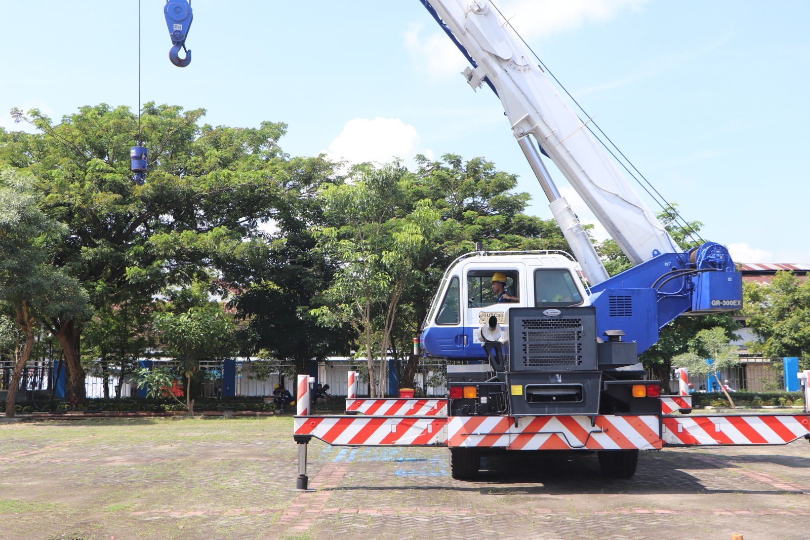 Lapangan upacara depan Grha Oktana mendadak jadi lebih semarak ketika sebuah mobile crane berwarna biru berdiri gagah dengan outrigger terbuka lebar. Bagi sebagian orang, alat ini mungkin terlihat seperti “truk besar dengan lengan panjang.” Namun, bagi mahasiswa Teknik Mesin Kilang (TMK) PEM Akamigas, inilah contoh nyata penerapan teori yang biasanya hanya mereka temui di ruang kelas.
