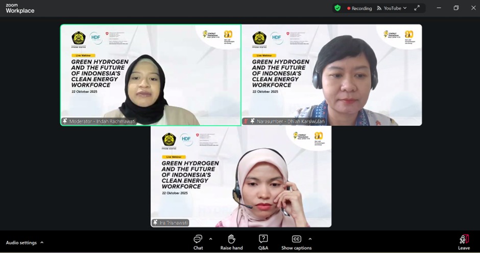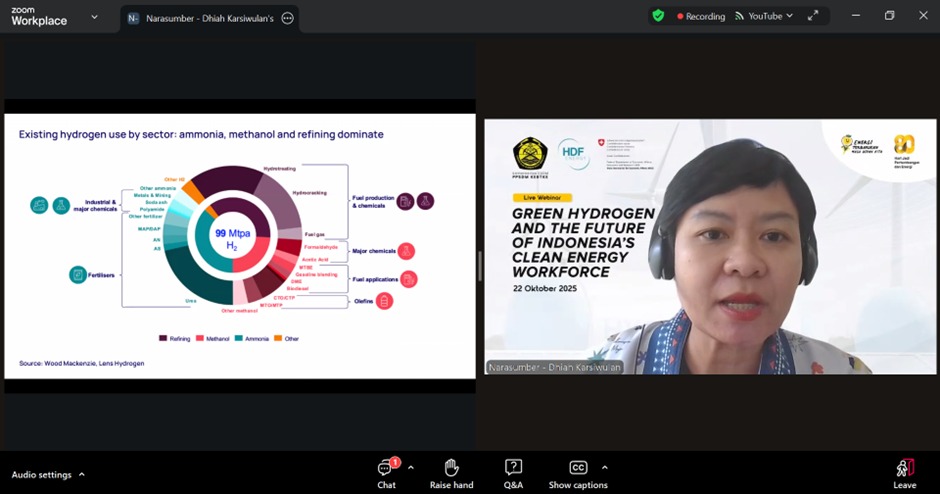 Dari sisi tenaga kerja, Dhiah menekankan pentingnya kesiapan SDM dalam seluruh rantai nilai hidrogen—mulai dari produksi, penyimpanan, transportasi, hingga aplikasi industri. Pengembangan sektor ini diproyeksikan menciptakan 300.000 lapangan kerja di Indonesia pada tahun 2060, dengan keterampilan yang dibutuhkan mencakup electrolysis engineering, fuel cell operation, keselamatan kerja, serta analisis kebijakan energi.