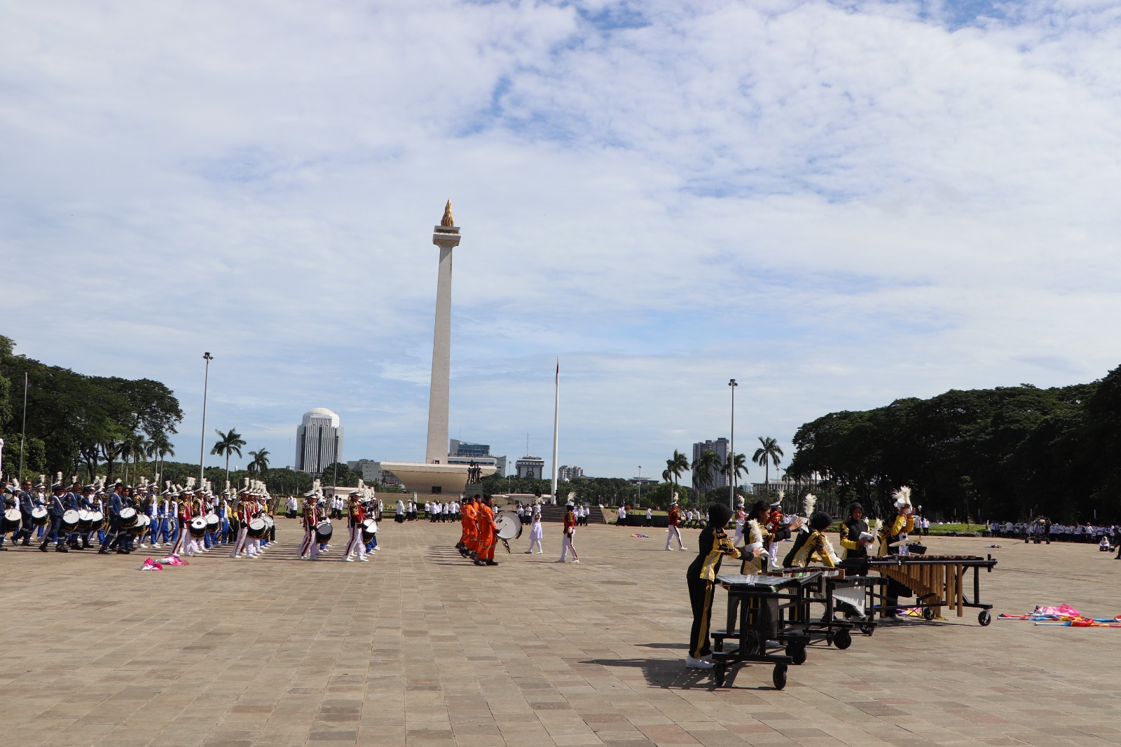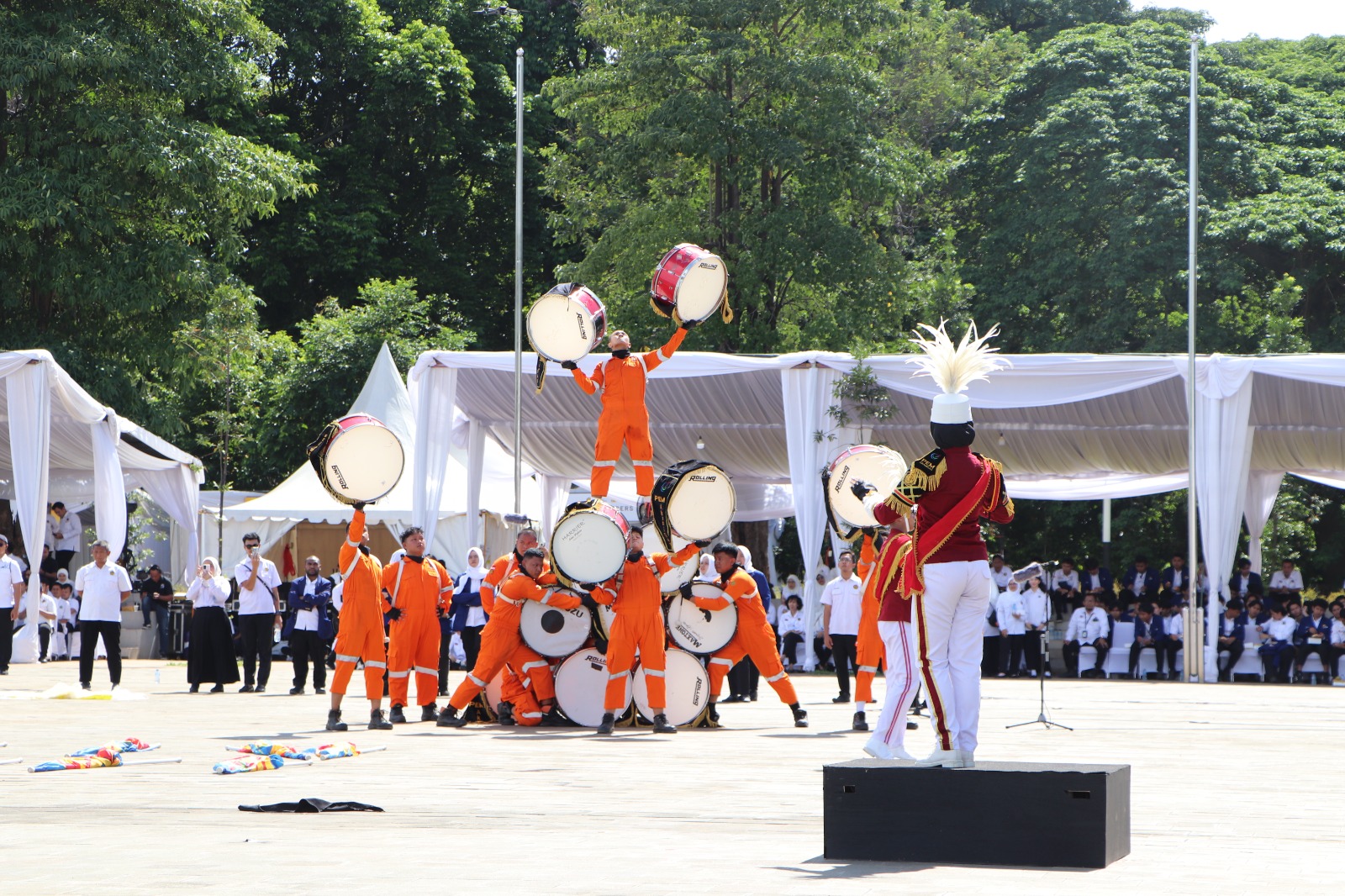 Marching Band Gema Bahana Vyatra tampil memukau sebagai bagian integral dari jalannya upacara. Dengan formasi barisan yang rapi dan irama musik yang dinamis, mereka mengiringi setiap prosesi upacara dengan penuh disiplin. Dentuman drum dan melodi alat tiup yang lantang bergaung di lapangan Monas, memperkuat nuansa patriotisme dan semangat kebanggaan terhadap sektor energi nasional.