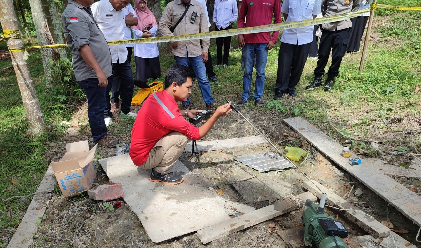 pegawai BDTBT hadir memberikan pendampingan teknis dengan melakukan pengukuran