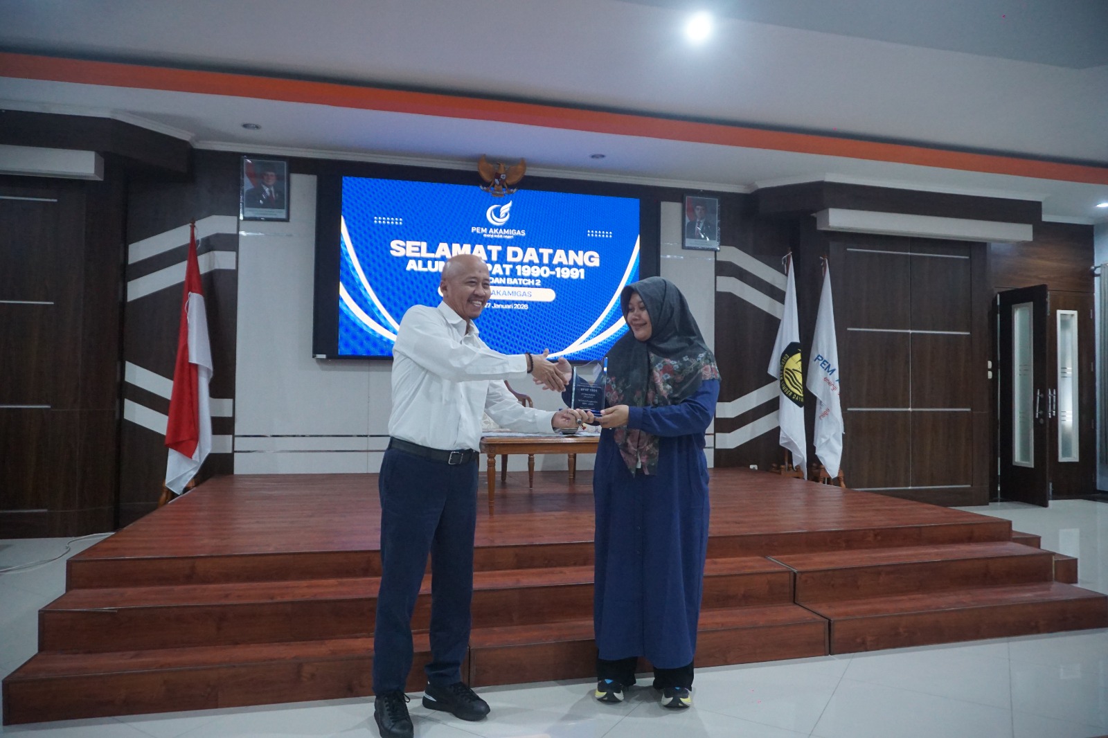 Suasana hujan rintik-rintik tak menghalangi hangatnya kenangan yang menyelimuti Kampus PEM Akamigas hari ini, Selasa (27/1/2026). Alumni yang tergabung dalam Bimbingan Persiapan Ahli Teknik (BPAT) angkatan 1990/1991 Batch 1 dan Batch 2 melakukan kunjungan untuk mempererat tali silaturahmi sekaligus melihat perkembangan almamater mereka.