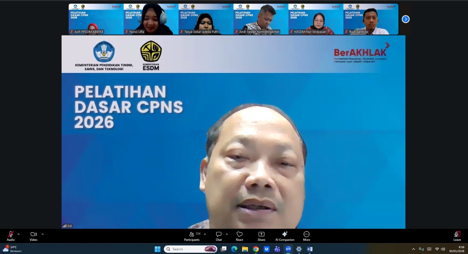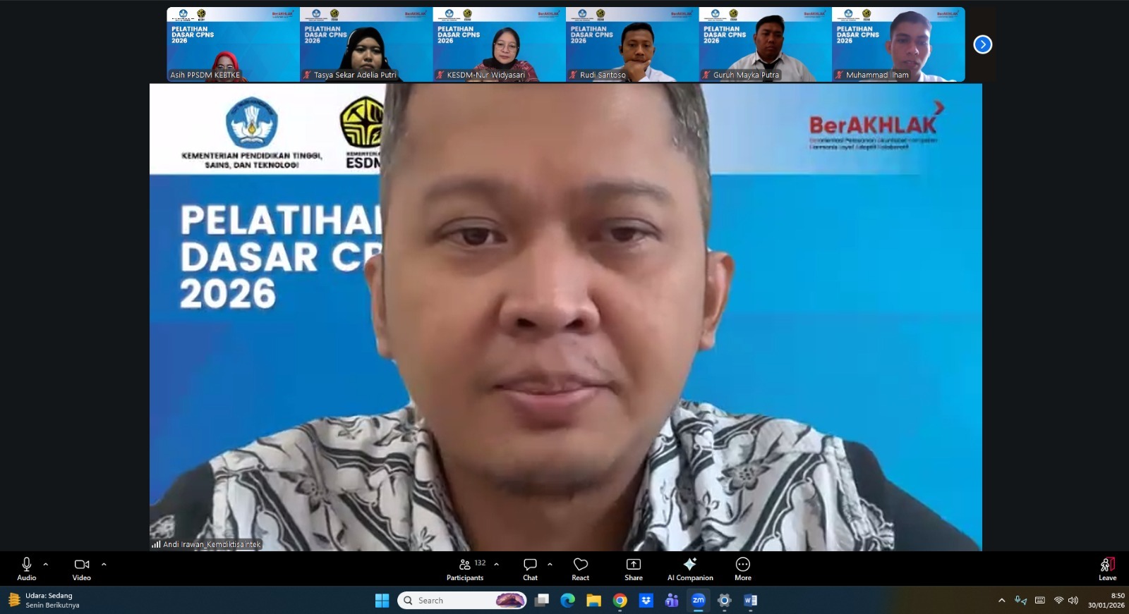 Jakarta, 30 Januari 2026— Pusat Pengembangan Sumber Daya Manusia Ketenagalistrikan, Energi Baru, Terbarukan, dan Konservasi Energi (PPSDM KEBTKE) bekerja sama dengan Pusat Pengembangan Sumber Daya Manusia Aparatur (PPSDM Aparatur) secara resmi menyelenggarakan Pembukaan Pelatihan Dasar (Latsar) CPNS Golongan II dan III Gelombang I (Angkatan 1, 2, dan 3) di lingkungan Kementerian Pendidikan Tinggi, Sains, dan Teknologi (Kemendiktisaintek).
